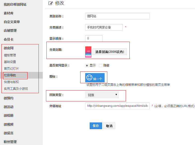 有几个注意的地方:根据选择的模板不同,有的模板是直接显示图片的,有的模板则是用的图标显示,所以在设置的时候根据需要设置封面图片和图标(注意:图片的不能超过200K);