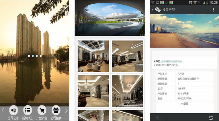 楼盘介绍、房型查询、地理位置定位、全景看房、预约看房、最新优惠、定金支付等一系列渠道,给房产公司更全方位展示,也让购房者足不出户即可了解最新动态。微商城:打造您的移动商城,解决在线支付难题
