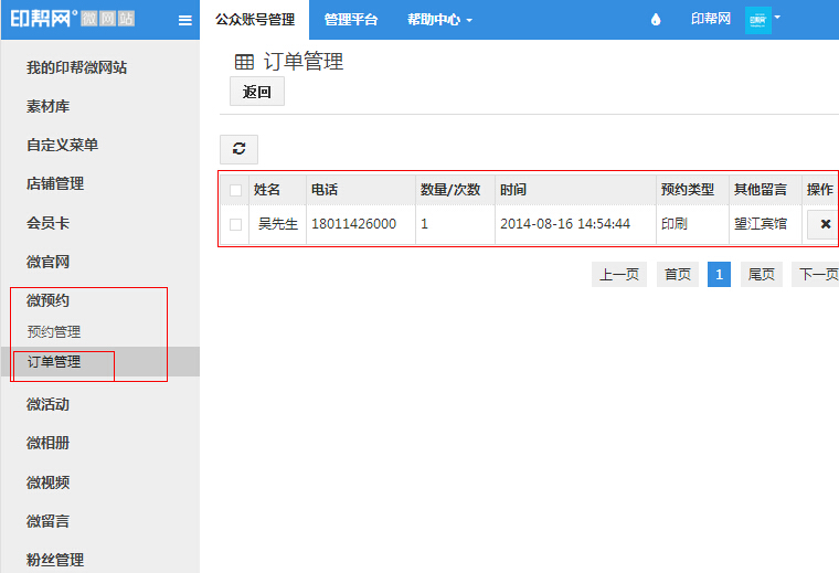 如果只有单个预约就直接复制网址,然后到栏目导航添加微预约--选择事件类型为链接。如果是多个预约就需要现在栏目导航添加微预约的菜单--栏目导航选择微预约。订单管理:查看和管理已有的预约!