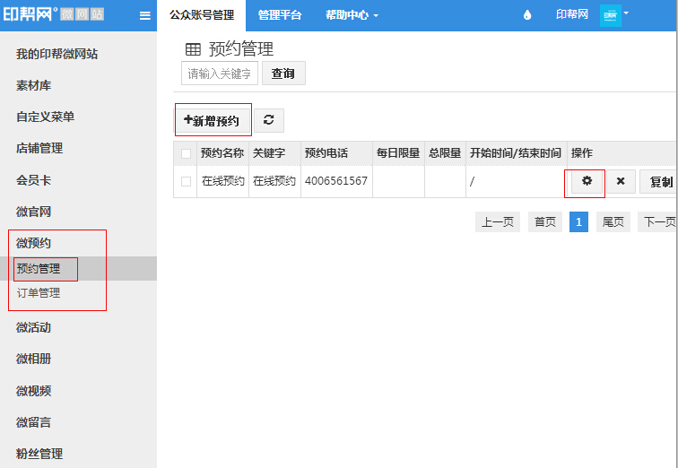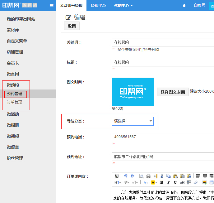 图文回复素材:选择相对应的栏目菜单。预约管理:添加预约的项目。可以添加多个预约。